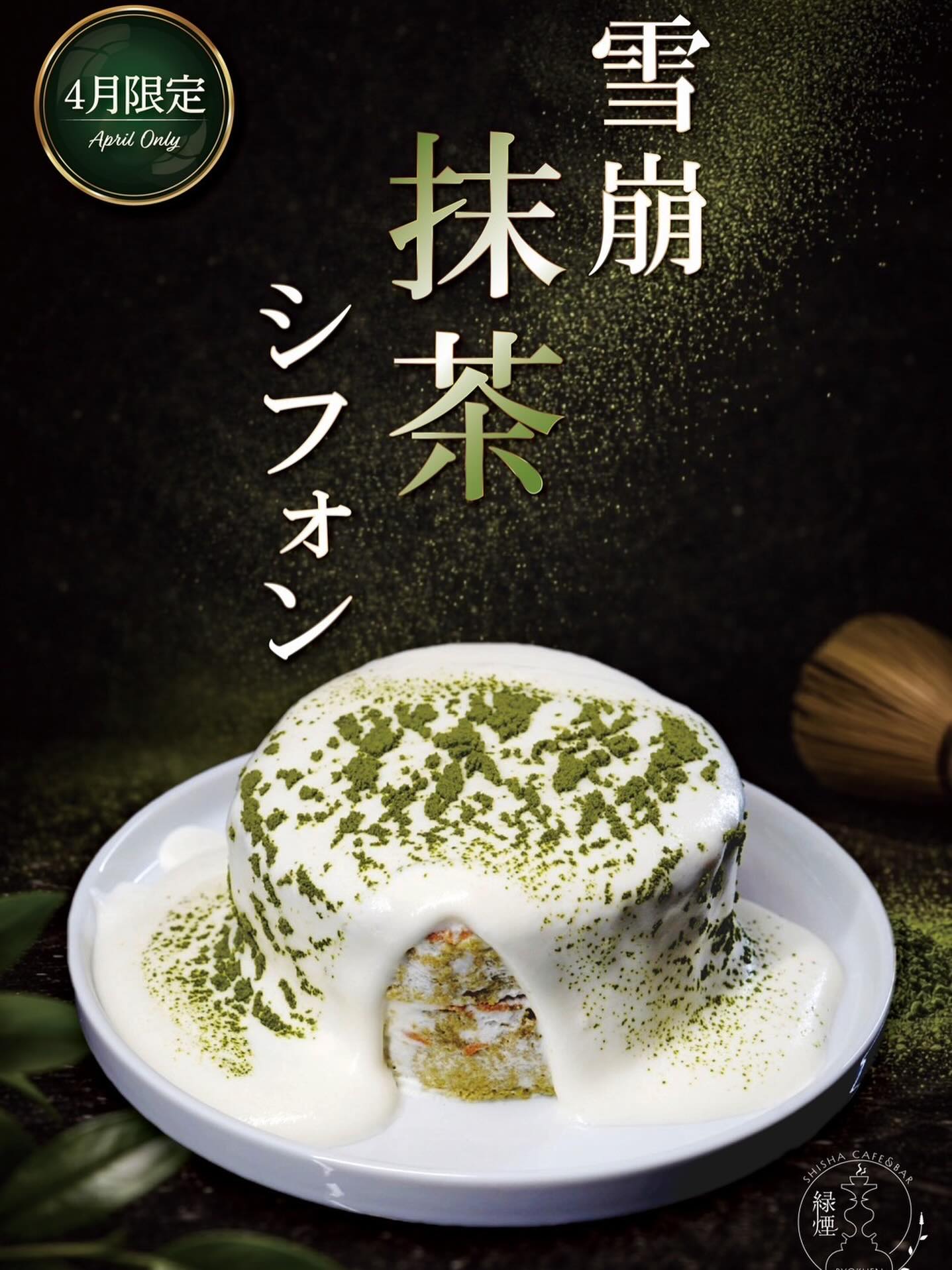 ふわっと軽い抹茶シフォンに、濃厚な抹茶クリームを“雪崩”のようにたっぷりと。